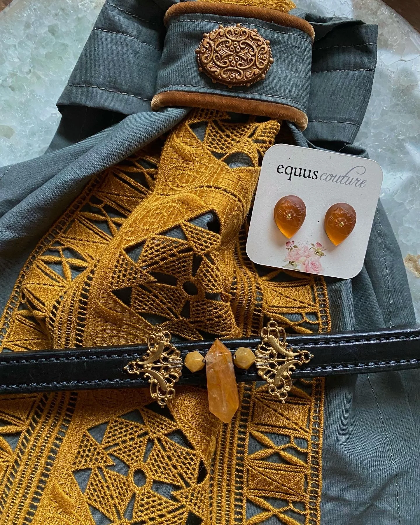 We are very proud to offer a line of exquisite stock ties made with vintage notions and attention to every design element. We love playing with texture and color; and there is no one else out there creating stock ties quite like ours. They are perfect for your next driving competition, fox hunt, side saddle outing, dressage experience, or can even be worn at your next big event with a sylish blazer or jacket. Style your ride with our line of couture stock ties.